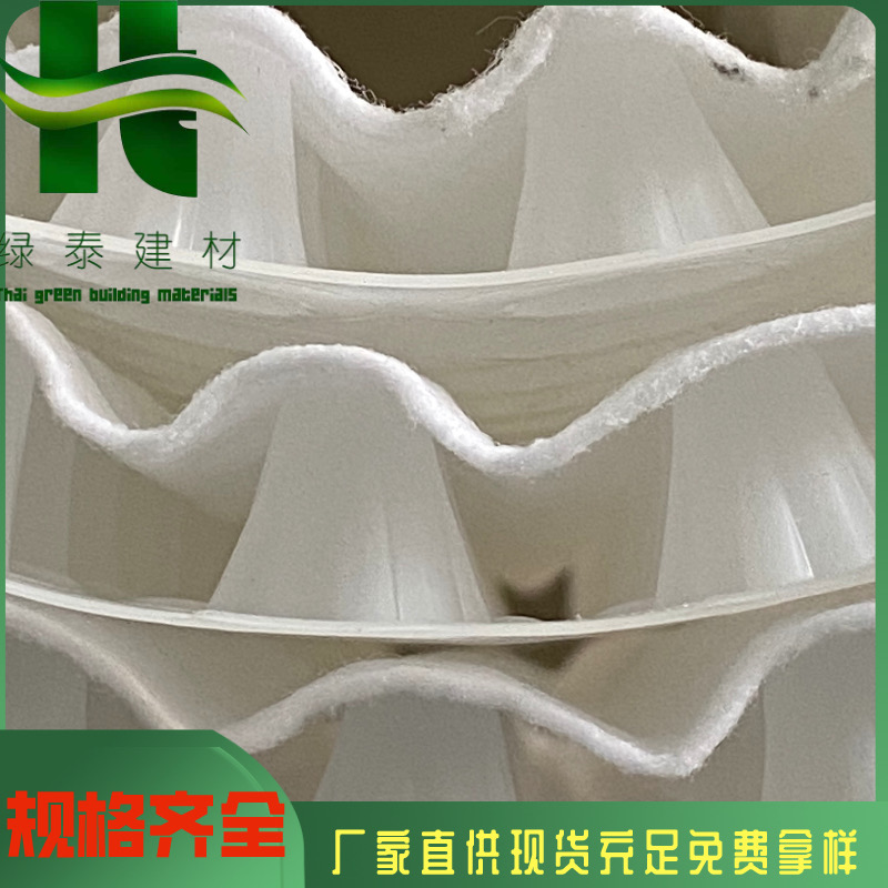 復(fù)合排水板(又名三維復(fù)合排水網(wǎng)、排水網(wǎng)格)是一種新型的排水土工材料。以高密度聚乙烯(HDPE)為原料,經(jīng)特殊的擠出成型工藝加工而成。具有三層特殊結(jié)構(gòu)。中間筋條剛性大,縱向排列,形成排水通道,上下交叉排列的筋條形成支撐防止土工布嵌入排水通道,即使在很高的荷載下也能保持很高的排水性能。雙面粘接滲水土工布復(fù)合使用,具有“反濾--排水--透氣--保護(hù)”綜合性能,是目前理想的排水材料。1、復(fù)合排水板是由一層或兩層無(wú)紡?fù)凉げ寂c一層不同結(jié)構(gòu)的三維合成土工網(wǎng)芯組成,具有排水隔離功能的復(fù)合結(jié)構(gòu)體;2、復(fù)合排水板應(yīng)用于地下車庫(kù)頂板種植、屋頂種植、地下側(cè)墻保護(hù)、排水,底板排水,隧道防水、排水,公路護(hù)坡,鹽堿地、沙漠種植、人工湖;3、復(fù)合排水板的應(yīng)用功能可隨意彎曲施工,快速排水防水層的靜水、HDPE土工膜積水,及時(shí)減輕主體結(jié)構(gòu)荷載,保護(hù)防水層和結(jié)構(gòu),避免遭受土壤回填,植物根刺、酸堿、地下昆蟲(chóng)和微生物等對(duì)防水層的破壞。結(jié)合防水層使用,起到雙重防水防滲,使防水層隔絕氣體、防止氧化,大大提高防水系統(tǒng)的壽命。柔韌性材料,抗壓、抗拉強(qiáng)度高,滿足開(kāi)裂縫所需的延伸率及行車道路的設(shè)施。經(jīng)久耐用的材料,滿足各種種植屋面使用,也可應(yīng)用老樓屋頂?shù)姆N植。施工簡(jiǎn)便,也可應(yīng)用于老樓屋頂?shù)姆N植。