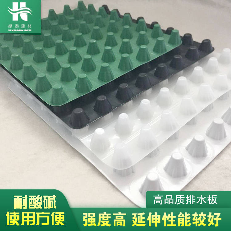 排水板采用高密度聚乙烯(HDPE)為主要原料,經(jīng)高科技生產(chǎn)線制造而成的柔韌性防水卷材,產(chǎn)品具有抗壓強(qiáng)度高,柔韌性好,抗拉強(qiáng)度高,耐腐蝕、耐老化、耐植物穿刺,不會(huì)分解、防水環(huán)保等特性,易于按裝,使用年限可達(dá)100年以上.