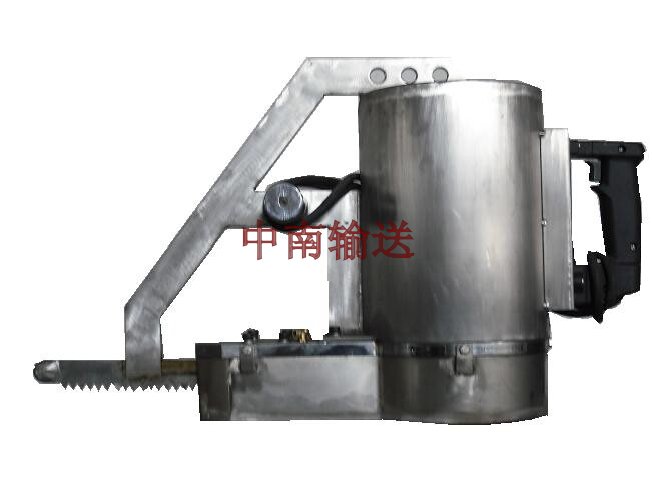 該機是用于牛、羊、馬等牲畜的開胸,以便工作人員對胴體的掏內(nèi)臟及劈半之用,主要由偏心塊、邊桿、鋸弓、鋸條、電機等組成。